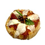 Base croccante con mozzarella fiordilatte, pomodoro ramato, basilico fresco, origano e pinoli tostati. Un
