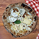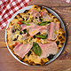 Mozzarella fiordilatte, ricotta, viande de cochon pesée et marinée, basilic, poivre, parmesan rapé