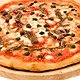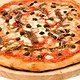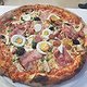 salsa di pomodoro, mozzarella, prosciutto crudo, piselli, wurstel, uovo sodo, carciofi, funghi freschi, origano, olio evo