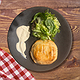 Burger de bœuf avec fromage fondu enrobé de pâte feuilletée croustillante.