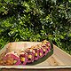 Riso rosso alla barbabietola, alga yakinori gold, sesamo b/n, crema barbabietola, gamberi* tempura, mango, philadelphia, teriyaki, maionese piccante