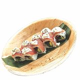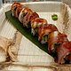 roll di alga nori all'interno, ripieno di riso all'esterno
