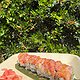 Riso, alga yakinori gold, sesamo b/n, salmone*, avocado, granella di barbabietola chips, maionese.