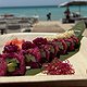 Riso, alga yakinori gold, sesamo b/n, crema alla barbabietola, avocado, cetriolo, mango, cavolo viola, cavolo bianco, maionese