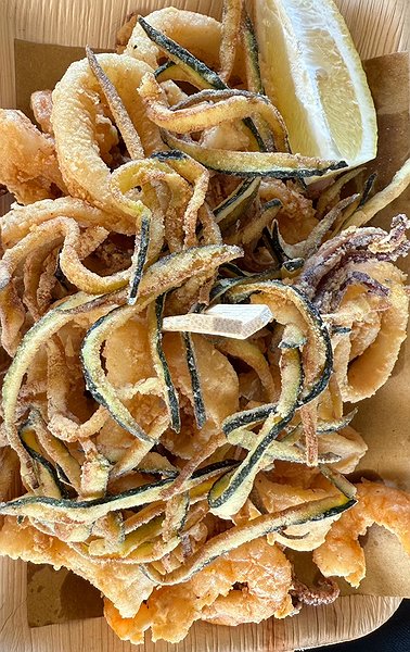 Frittura di calamari*e gamberi* sgusciati con zucchine fresche