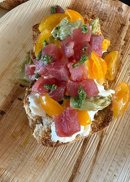 sottolio dal gusto deciso, dadolata di tonno* crudo delicata e una vellutata crema di basilico