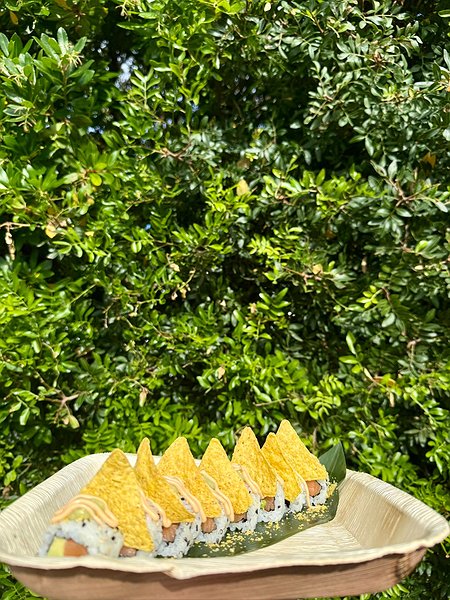 Riso, alga yakinori gold, sesamo b/n, salmone*, avocado, friggitello, crema di avocado, nachos, maionese piccante.