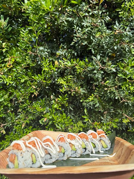 Riso, alga yakinori gold, sesamo b/n, salmone*, avocado, tobiko*, tabasco, erba cipollina, maionese.